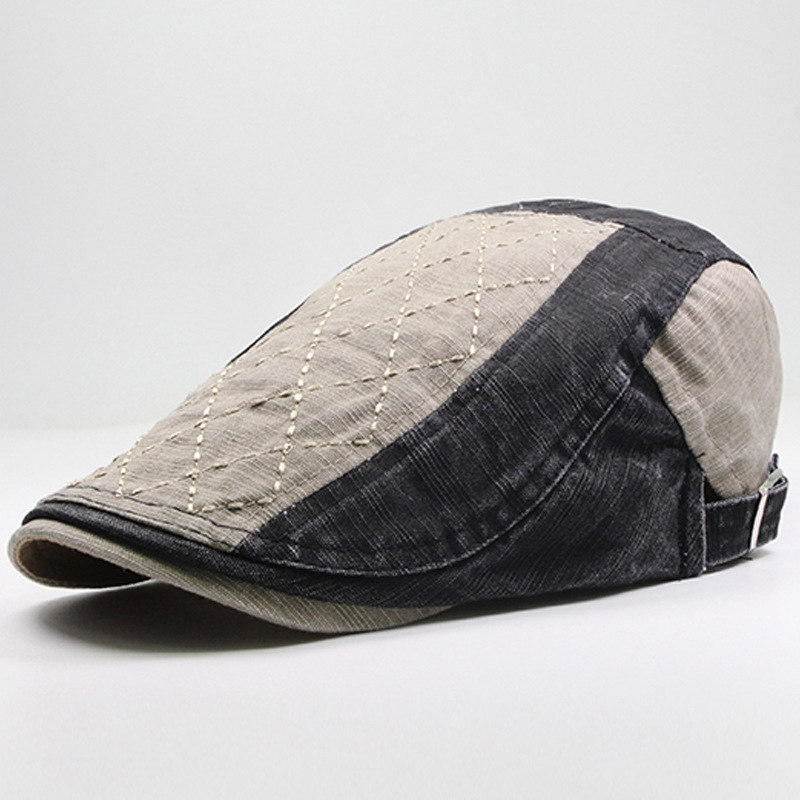 Spliced pure cotton duckbill hat, casual sun shading and sun protection beret, fashionable and casual men's hat
