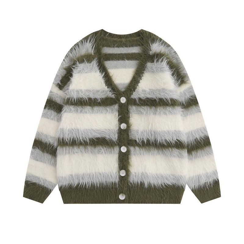 Striped Fleece V-Neck Sweater Jacket Autumn Winter Loose Casual Pullover Knitwear Men's Ins Trend