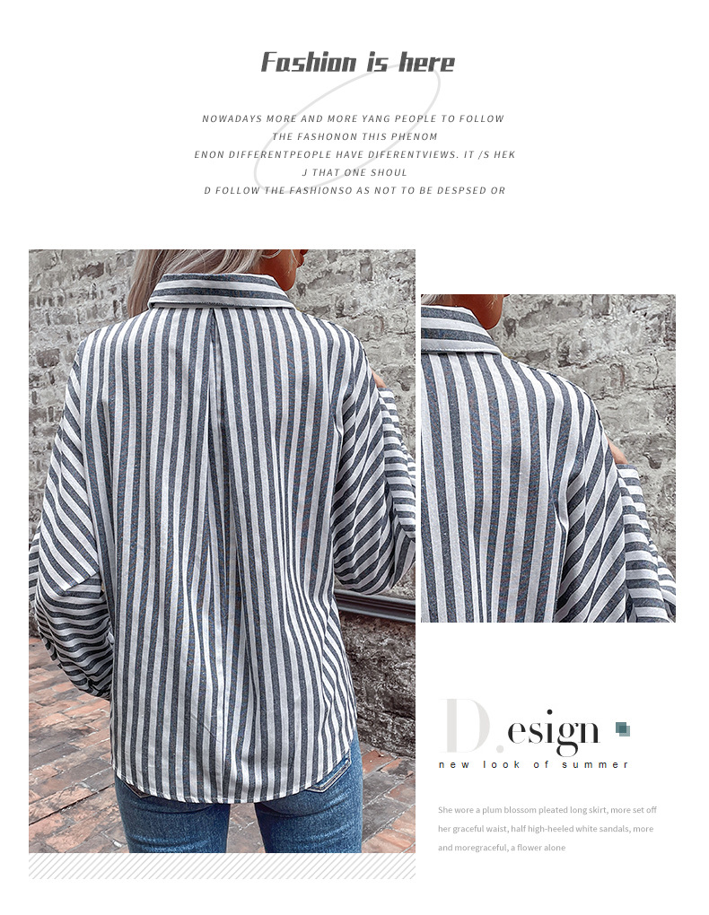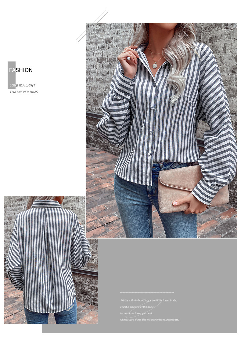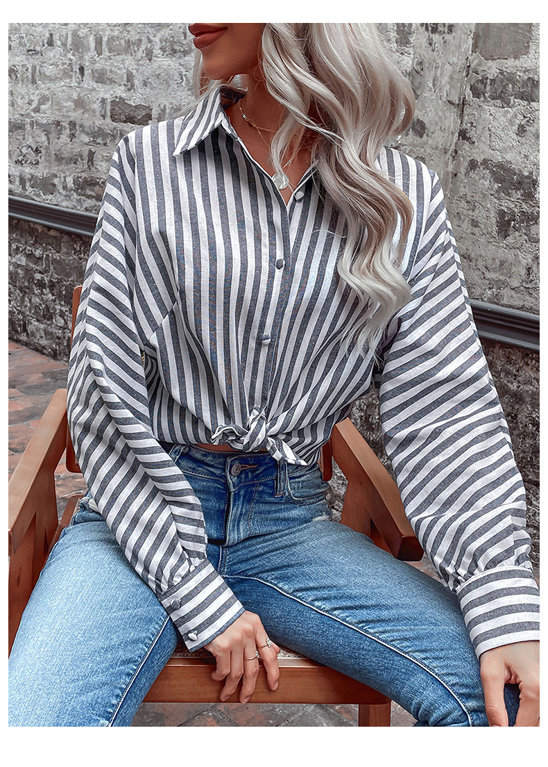 Gestreiftes Strickjacke Langarm-Poloshirt für Commuter Damen