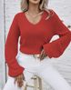 Gestrickte Damenbekleidung 2023 Herbst Einfarbig Laterne Langarm Pullover Pullover V-Ausschnitt