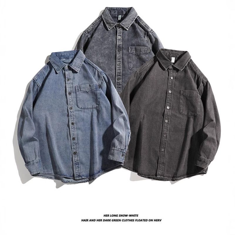 Washed denim shirt for men in spring and autumn, trendy, loose and casual, suitable for teenagers to wear as an outerwear