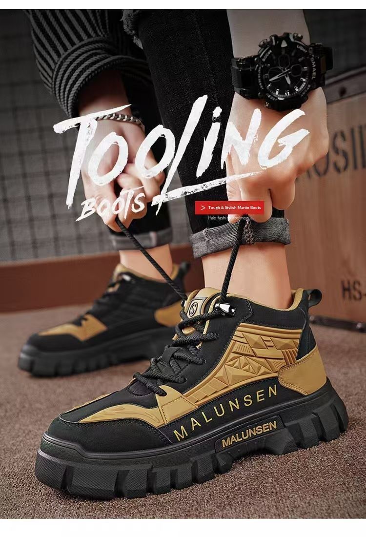 Glide Herren Martin High Top Herbst Amerikanischer Retro Motorrad Arbeitsstiefel Outdoor Wandern Wasserdicht Rutschfest Dicke Sohle Sicherheit