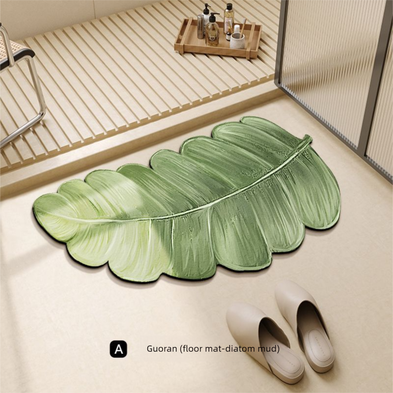 Green Plant Bathroom Absorbent Mat Toilet Entrance Shower Room Foot Mat Diatomaceous Earth Irregular Non-Slip Entry Mat