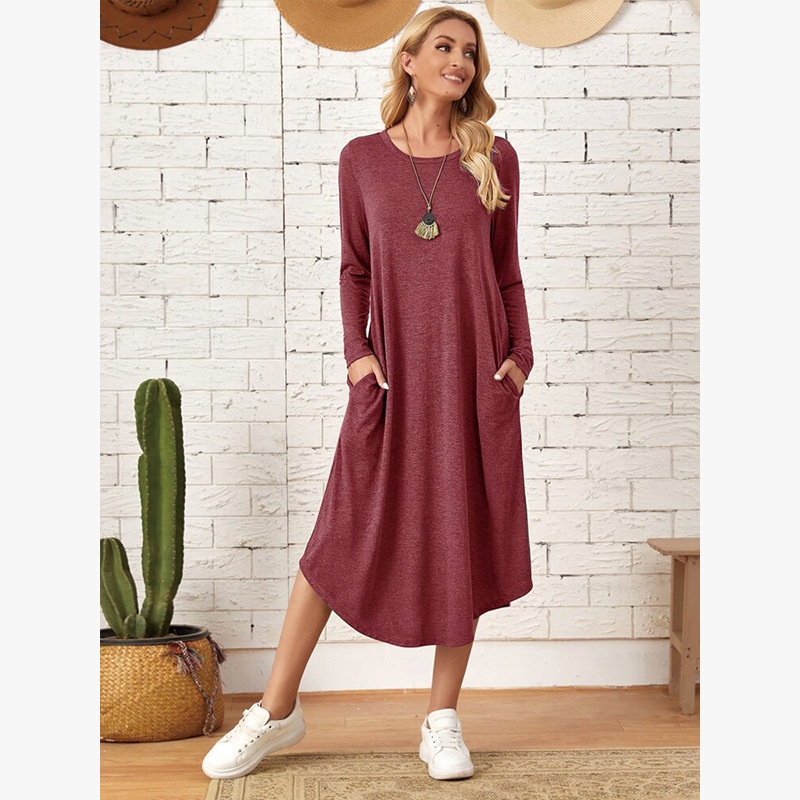 GraceChic Herbst/Winter 2022 Neue europäische und amerikanische Damenmode, einfarbig, gestrickt, Seitennähte, gerader Schnitt, Einsatztasche, geschwungen