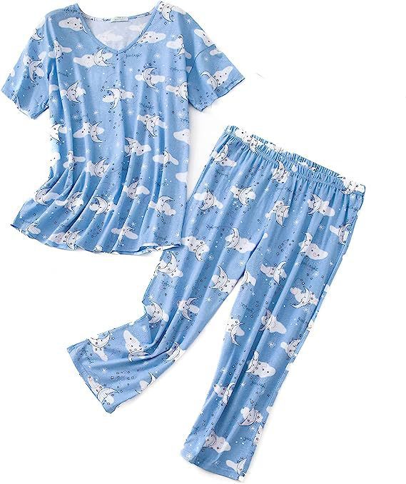 GraceChic 2024 Cross-Border European And American Kurzarm-Caprihose Strick-Homewear Plus Size Damen-Pyjama-Set