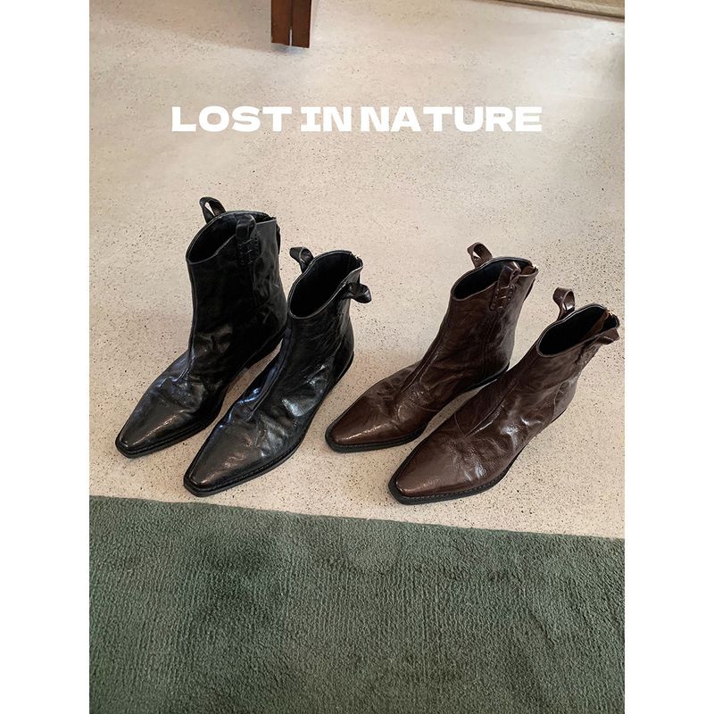 Grape Mom Studiolee Modische spitze V-Mund Cowboy Slim Thick Heels Wrinkled Western Short Boots Damen Herbst