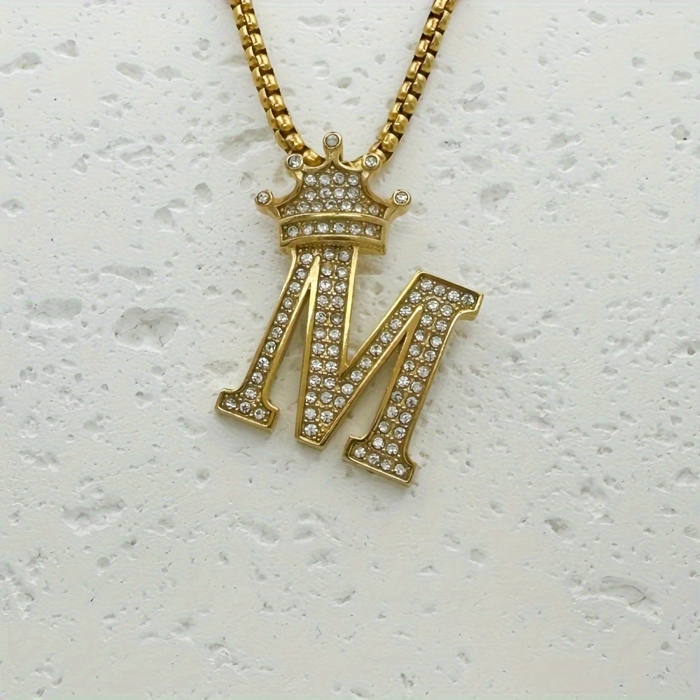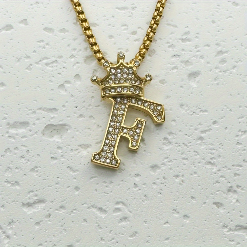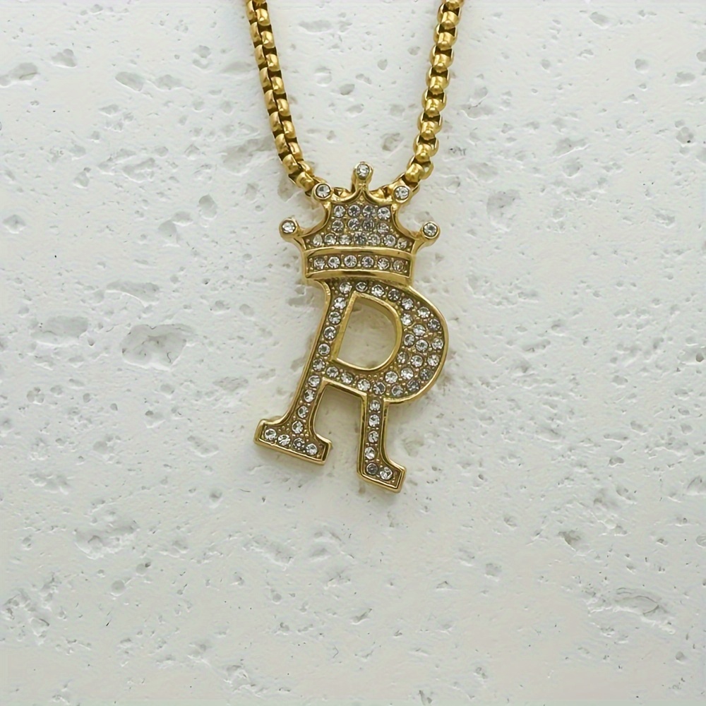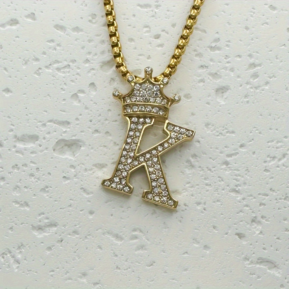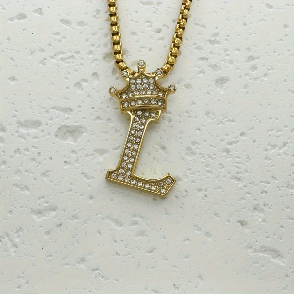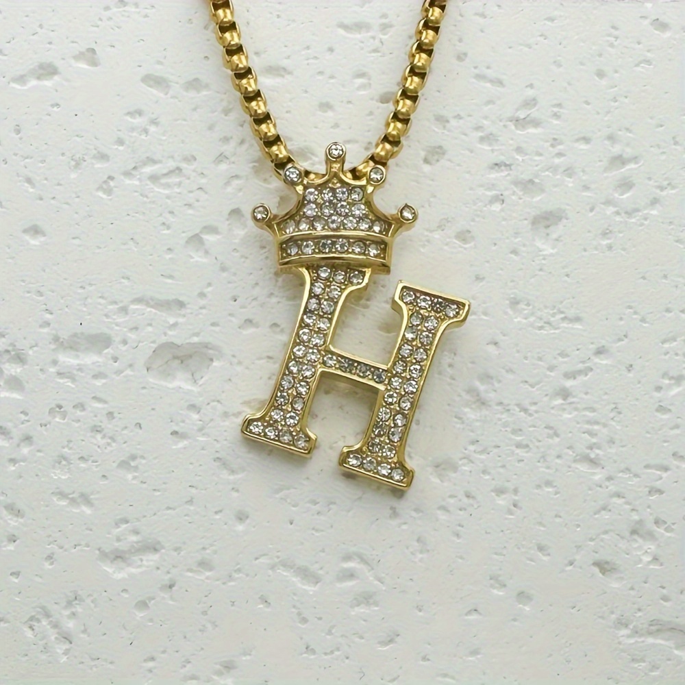 Greppn 1-teiliges Set mit plattiertem 316L Edelstahl-Anfangsbuchstaben-Anhänger und Strasssteinen – lässiger Hip-Hop-Schmuck für Damen und Herren