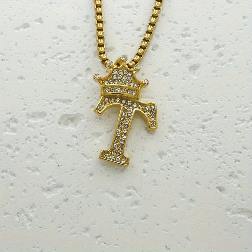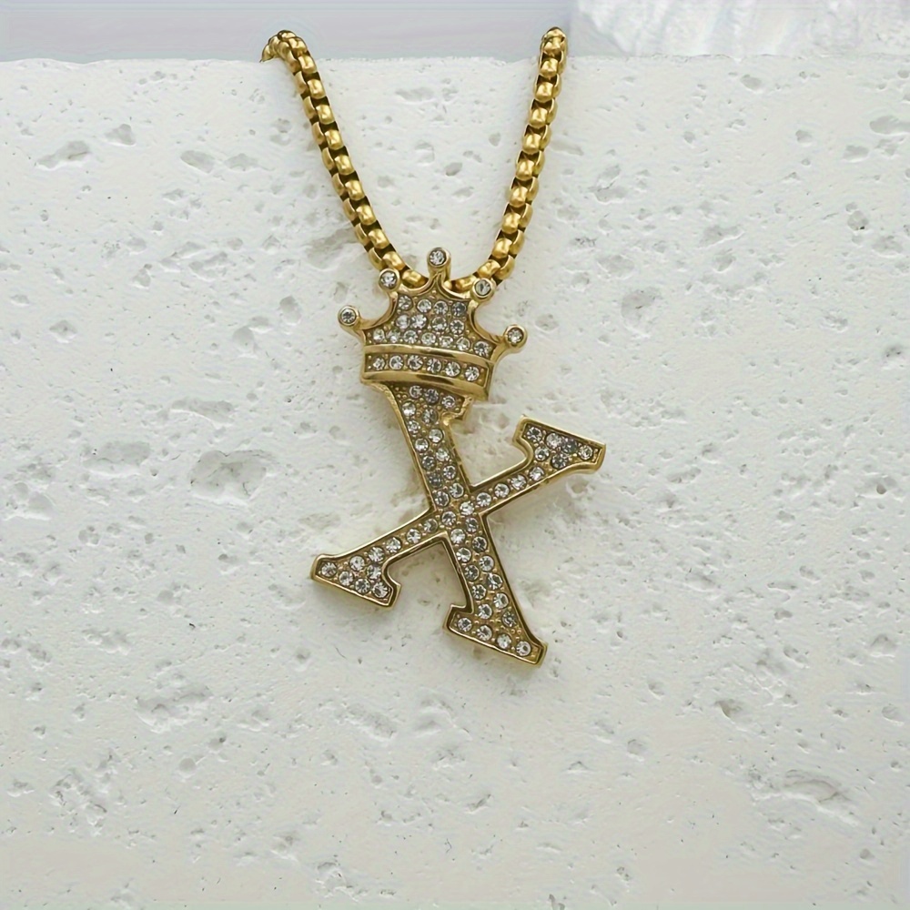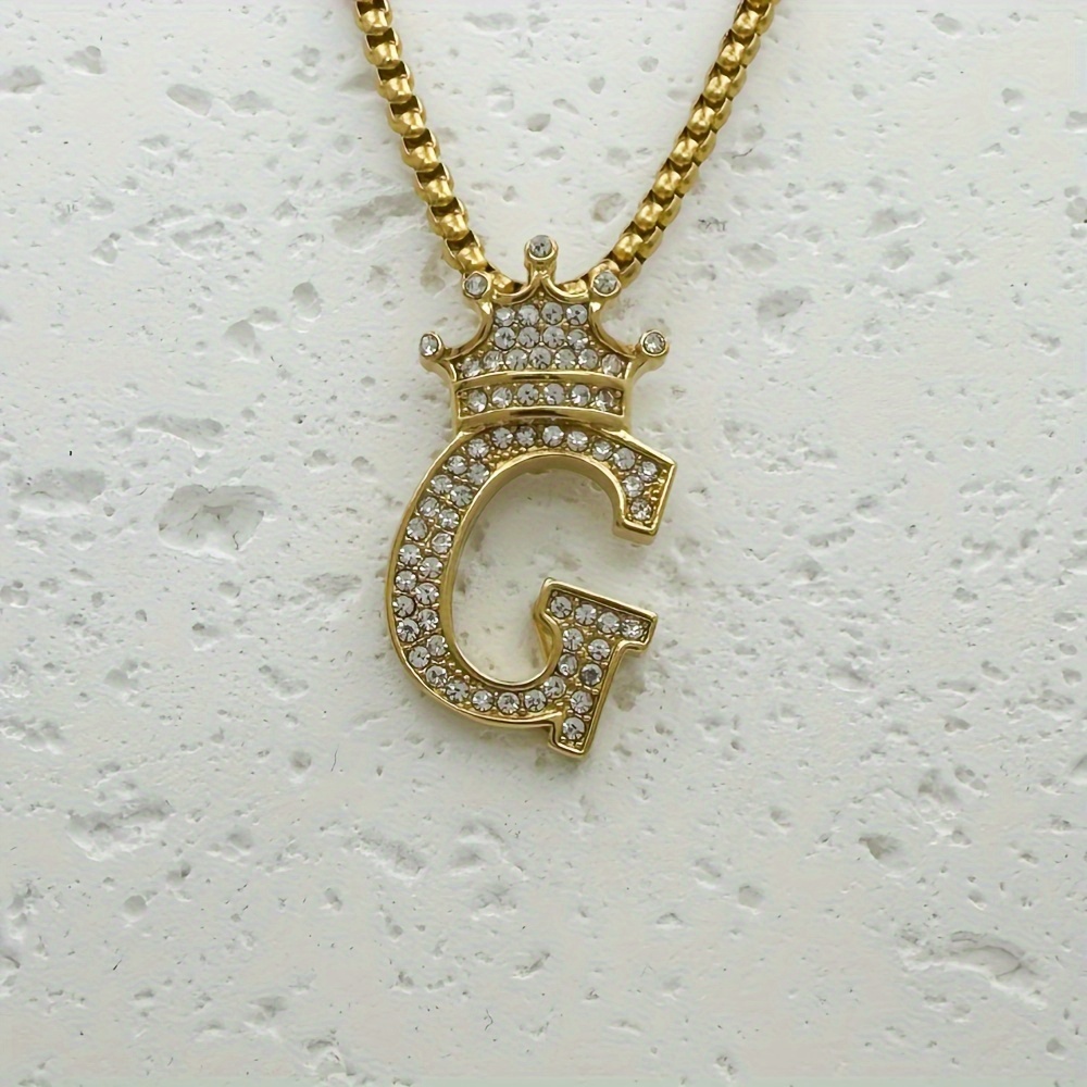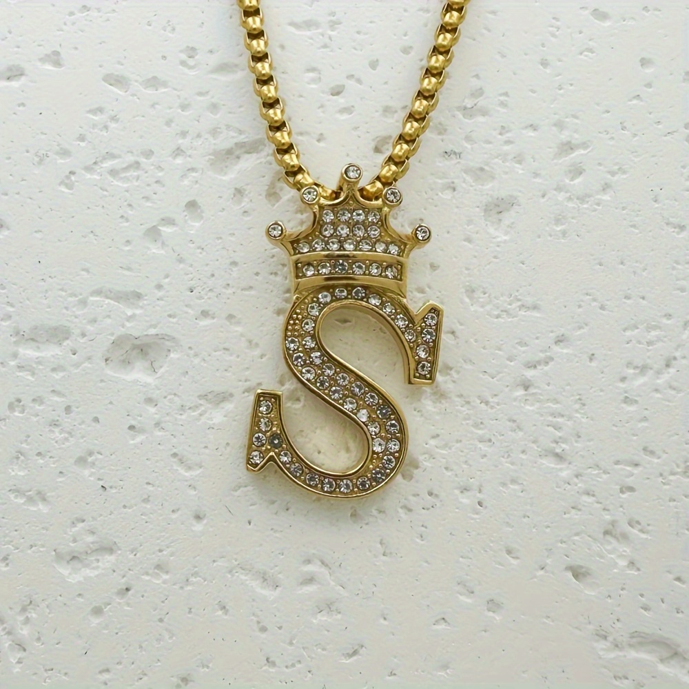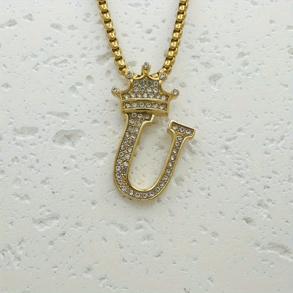Greppn 1-teiliges Set mit plattiertem 316L Edelstahl-Anfangsbuchstaben-Anhänger und Strasssteinen – lässiger Hip-Hop-Schmuck für Damen und Herren