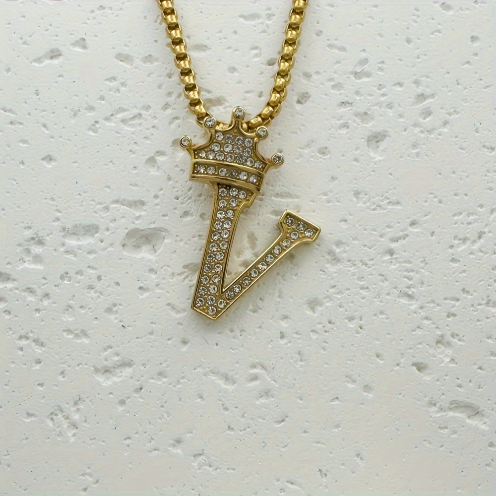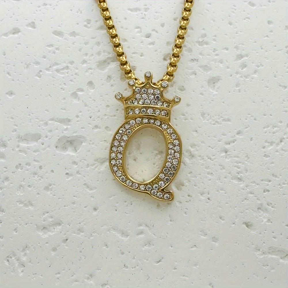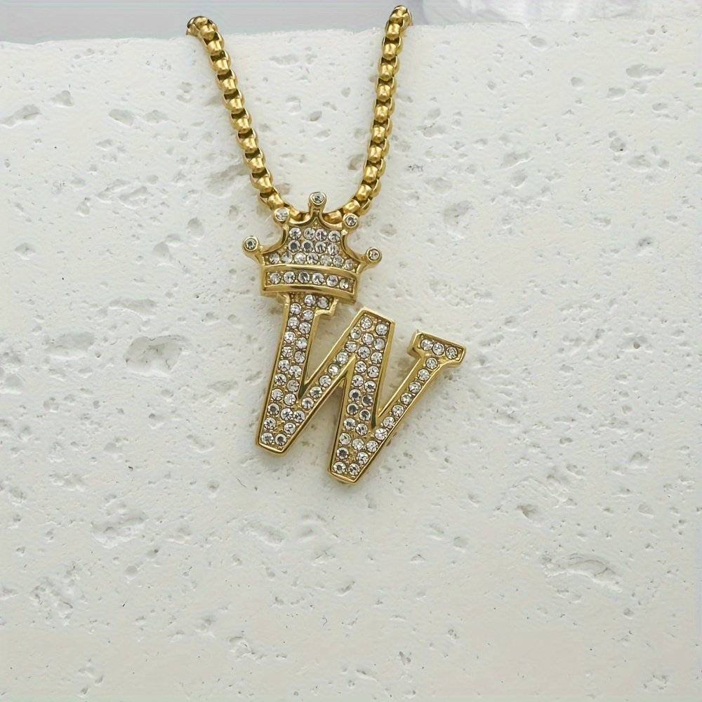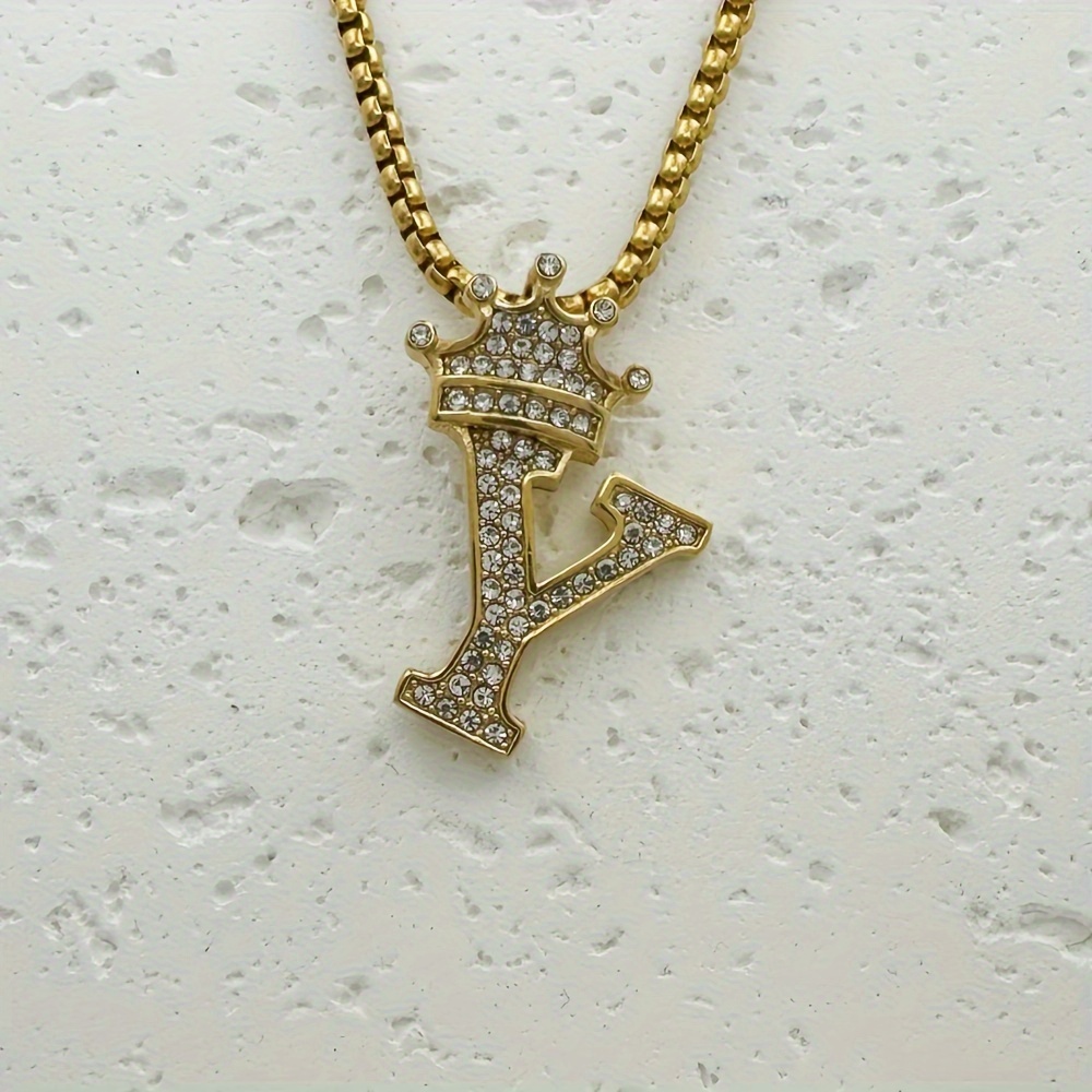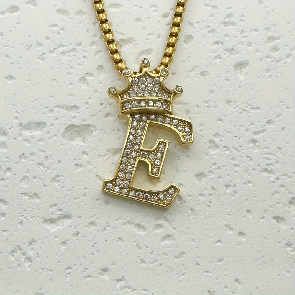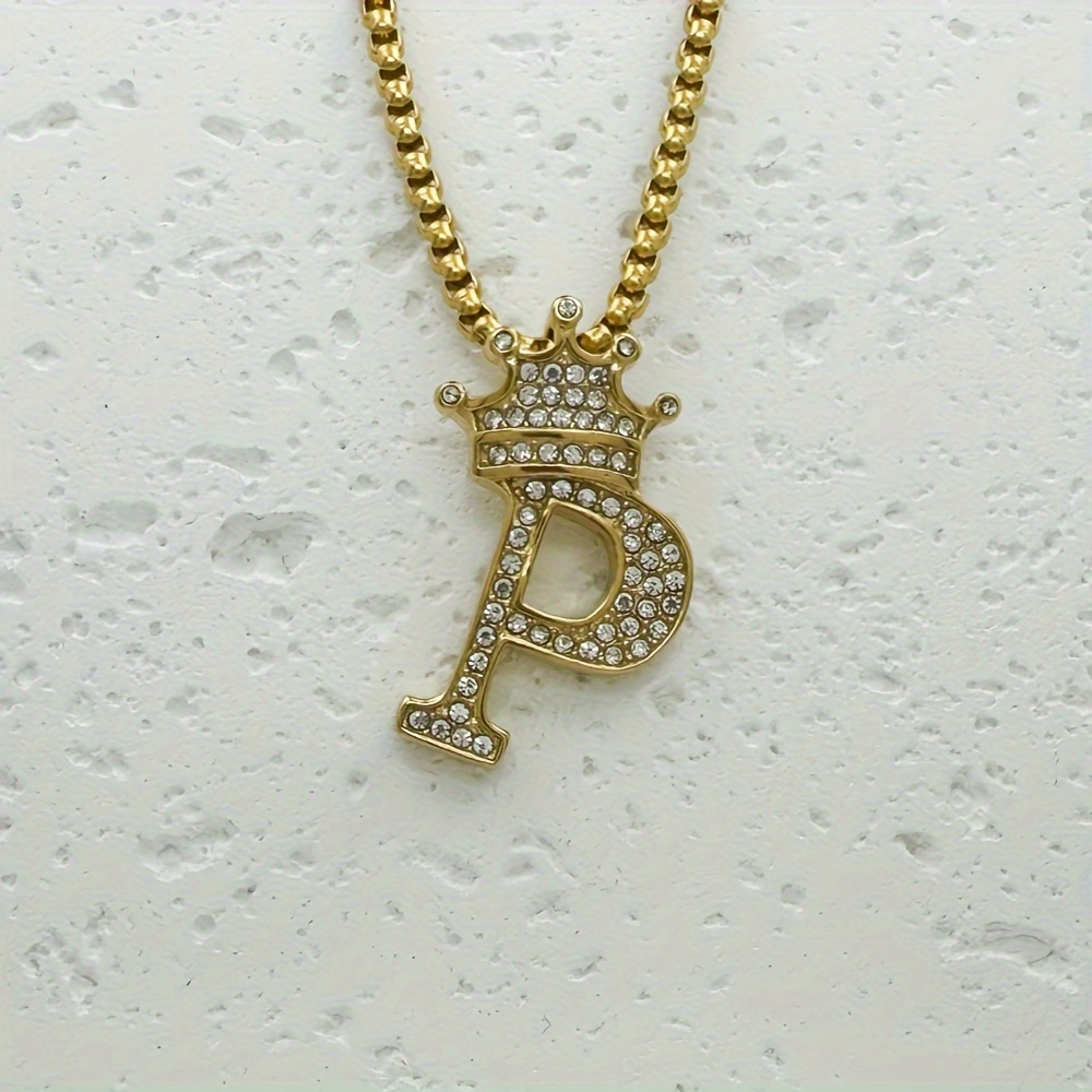 Greppn 1-teiliges Set mit plattiertem 316L Edelstahl-Anfangsbuchstaben-Anhänger und Strasssteinen – lässiger Hip-Hop-Schmuck für Damen und Herren