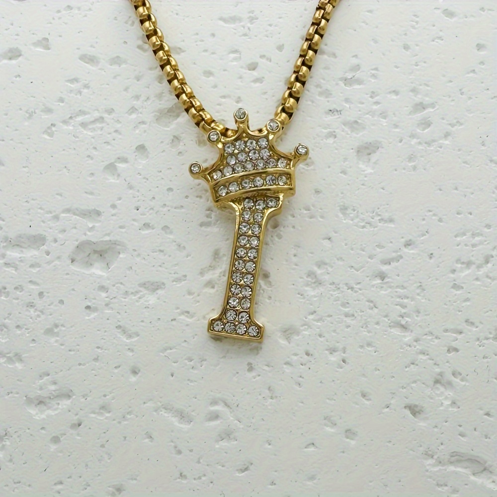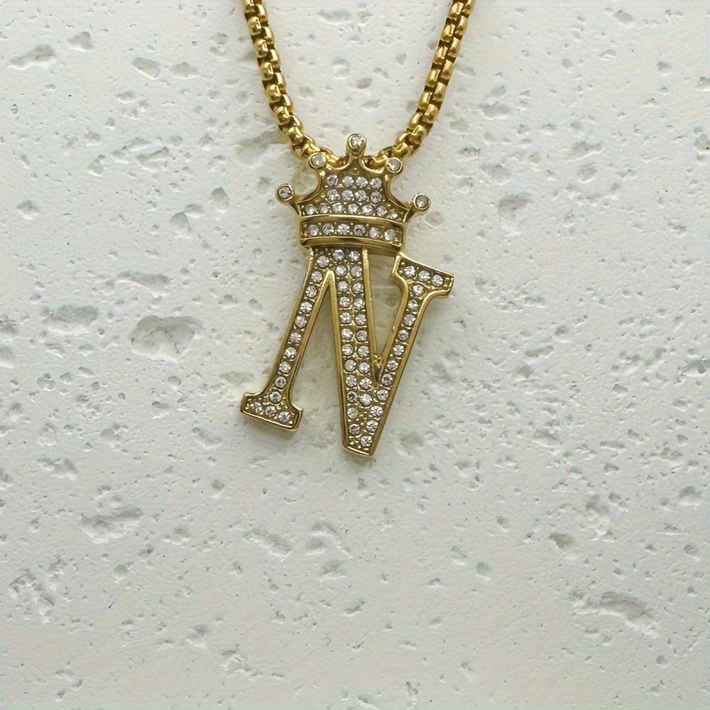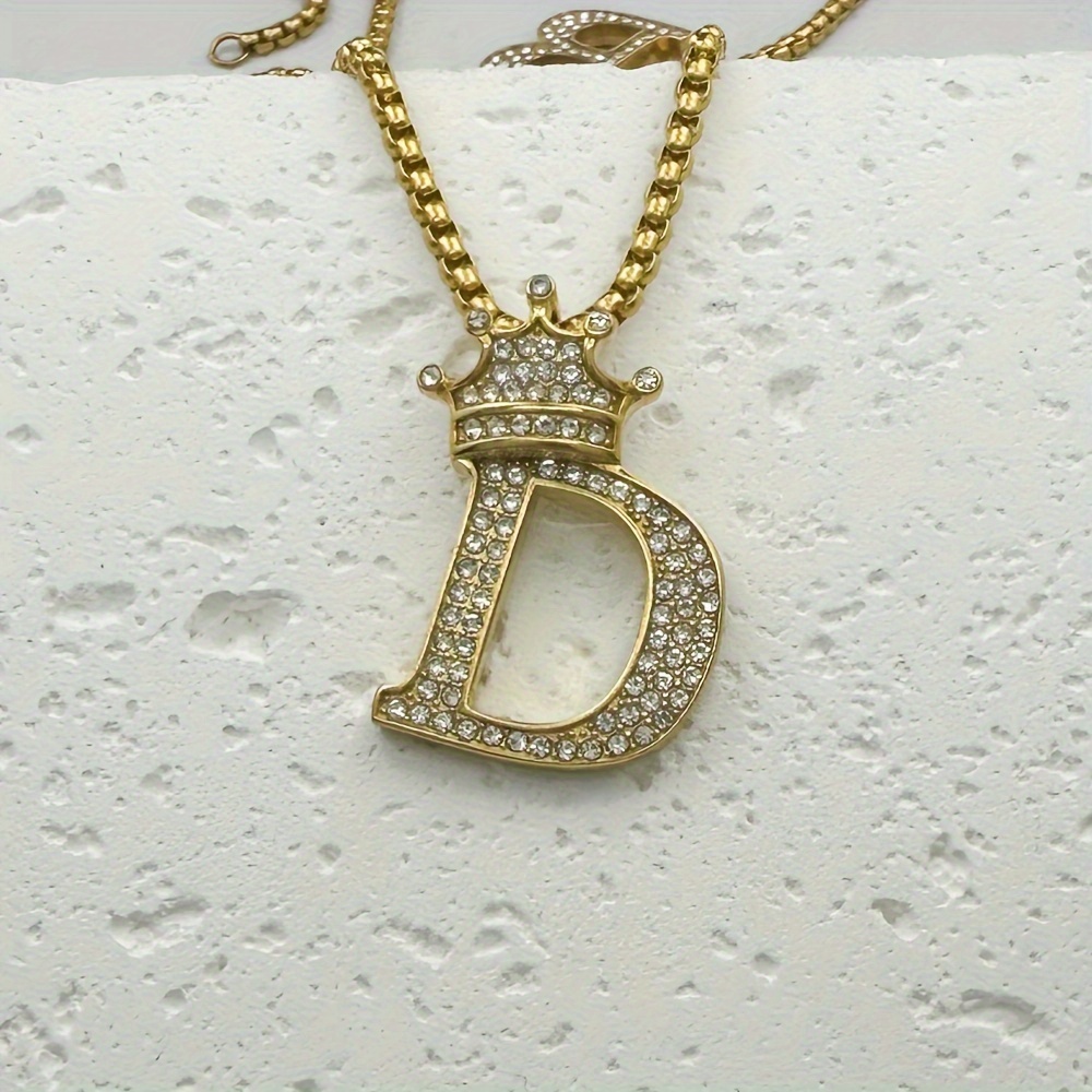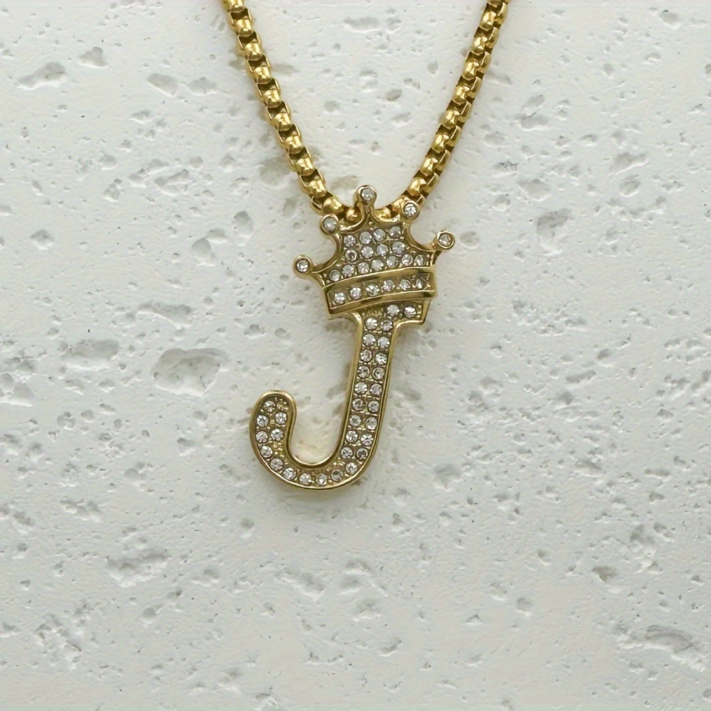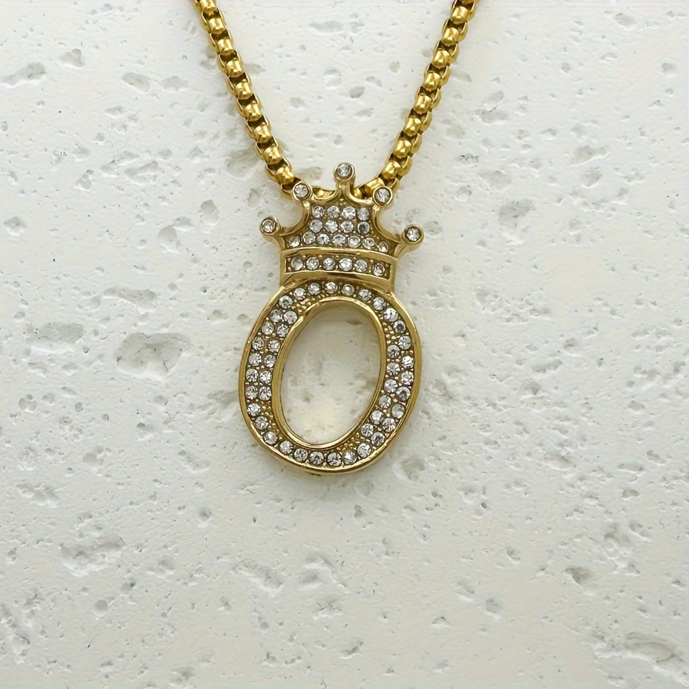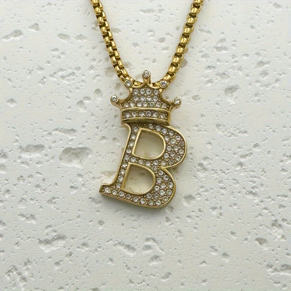 Greppn 1-teiliges Set mit plattiertem 316L Edelstahl-Anfangsbuchstaben-Anhänger und Strasssteinen – lässiger Hip-Hop-Schmuck für Damen und Herren