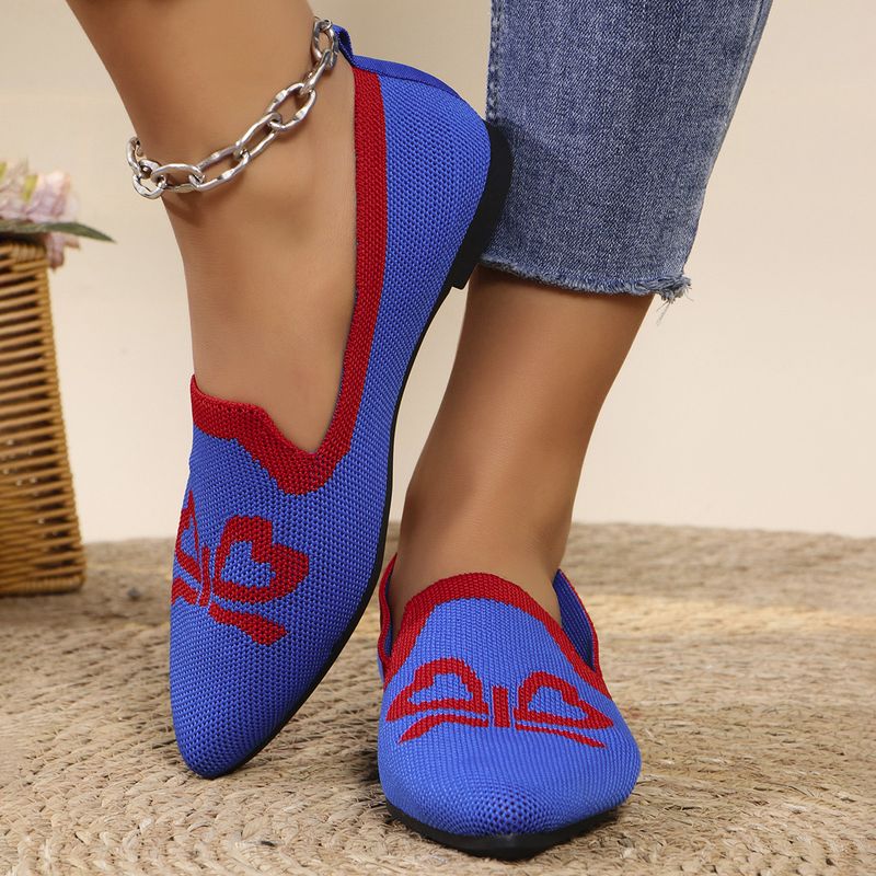 Große Größe für Damen, trendige spitze, flache Öffnung, niedriger Absatz, fliegengewebtes Mesh, atmungsaktive Damen-Einzelschuhe