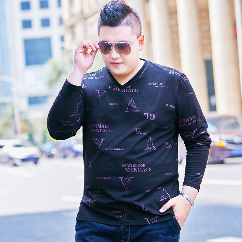 Große Größe Herren Ganzkörper bedrucktes T-Shirt Herren Extra große Größe V-Ausschnitt Langarm T-Shirt Herren Guochao Winter Bottom Shirt Herren