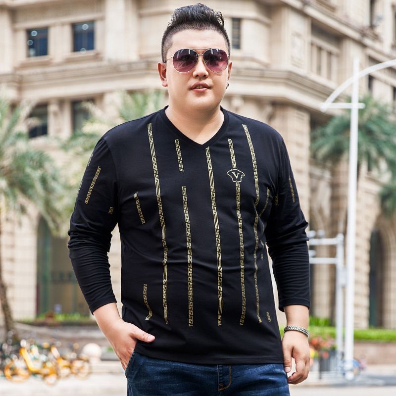 Große Herrenbekleidung, Herbst-T-Shirt für dicke Männer, Übergröße für junge Männer, dickes Langarm-T-Shirt mit V-Ausschnitt, National Tide für Herren