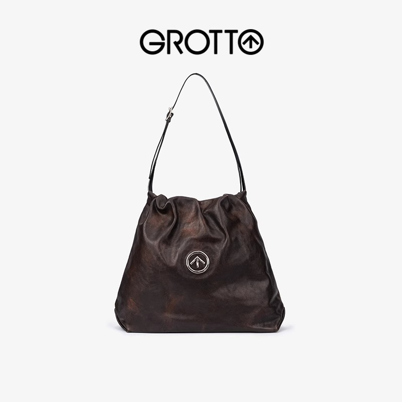 GROTTO Ge Le Mei Rad Genuine Leather Garbage Bag Medium Size Mother Bag Single Shoulder Crossbody Bag New Year Gift