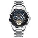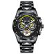GUANQIN Automatische mechanische Herren-Skelett-Armbanduhr aus Wolframstahl, wasserdicht, Saphir, Wochenkalender, multifunktionale Uhr für Herren