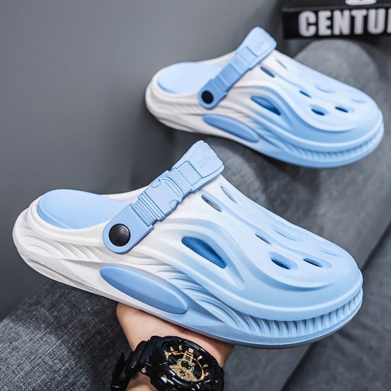 Cave shoes for men in summer, non slip and wear-resistant, thick sole with a sense of stepping on poop, toe cap slippers, gradient sports beach sandals