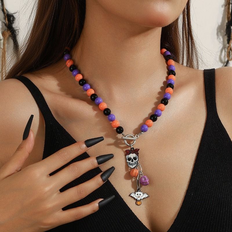 Whether you prefer the bold chain design with layered pumpkin charms, the beaded style with ghost and skull accents, or the colorful beaded necklace with a skull pendant and bat charm, this set has a piece for every Halloween look. Crafted with durable materials and vibrant detailing, these necklaces are perfect for Halloween parties, costume events, or adding a gothic touch to your everyday style.