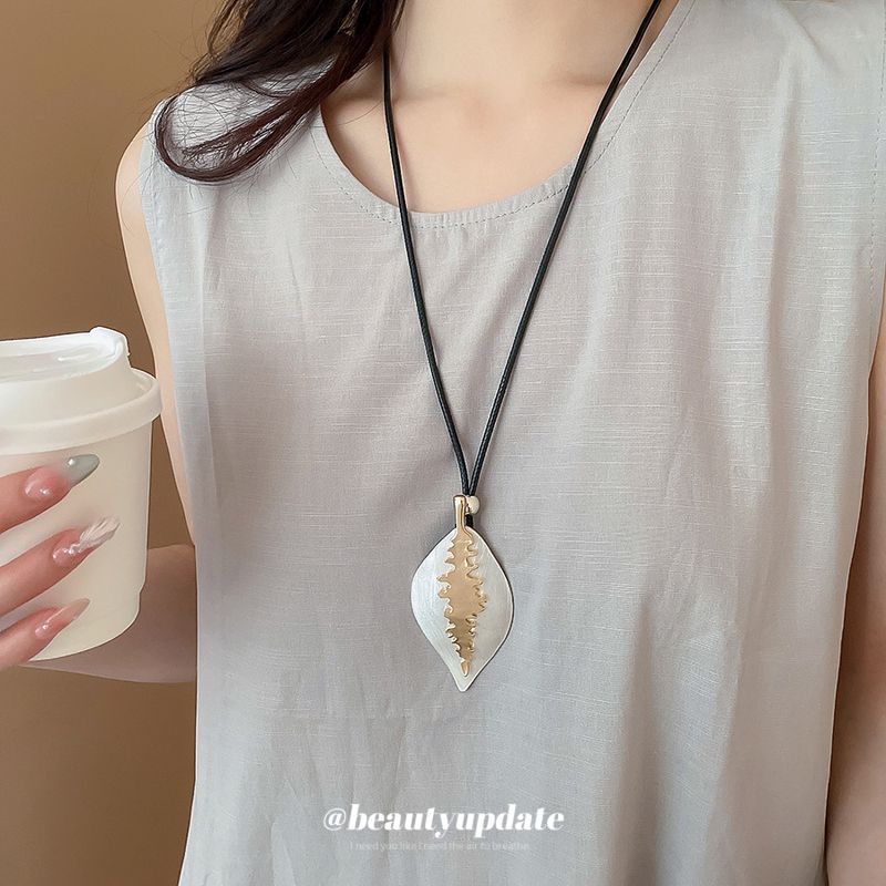Halskette mit Blattanhänger aus Leder, Persönlichkeit, schlicht, elegant, Schlüsselbein, Nischenmode, High-End-Pulloverkette für Frauen