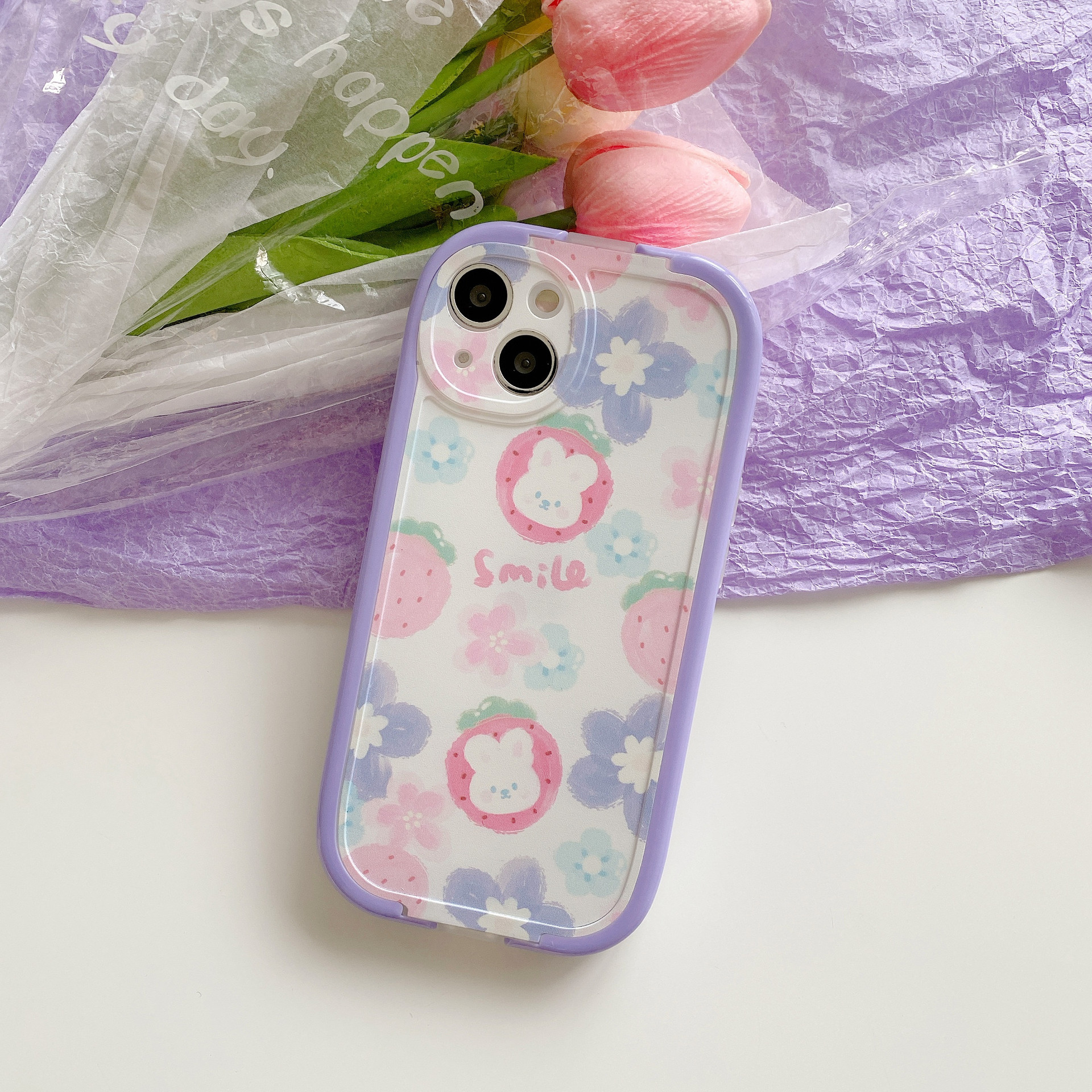 Apple 14 Pro Phone Flower XSMax Rabbit Strawberry 12 Stand Case iPhone 13 Pro Soft Case 11 Suitable