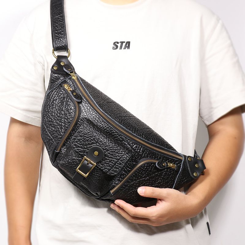 Hot Men's Wild Cowhide Chest Bag Multifunctional Genuine Leather Waist Bag Outdoor Commuting Top Layer Leather Single Shoulder Crossbody Bag