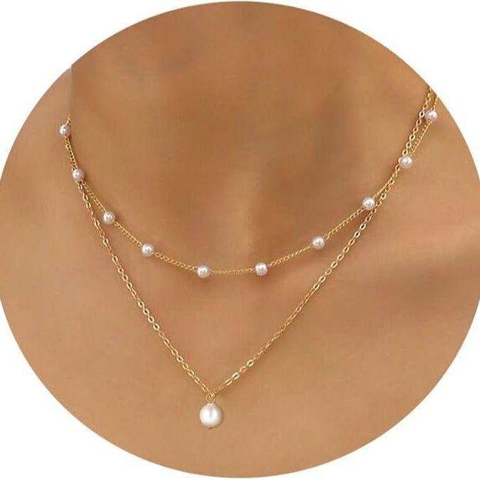 Hot Selling Real Gold Plated Brass Pearl Necklace Layered Design Double Layer Clavicle Chain for Women