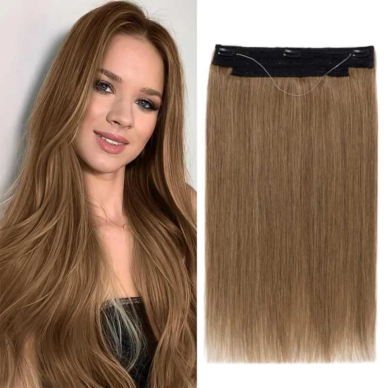 Hellbraune Haarverlängerungen mit Fischliniendraht, 100 % Echthaar, glatt, 40,6–66 cm, 120 g, für Frauen, Farbe Nr. 6