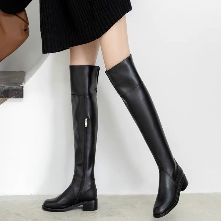 Fall/Winter 2025 New Over-the-Knee Women's Boots Low-Heel Wide-Leg Boots Velvet Knee-High Boots
