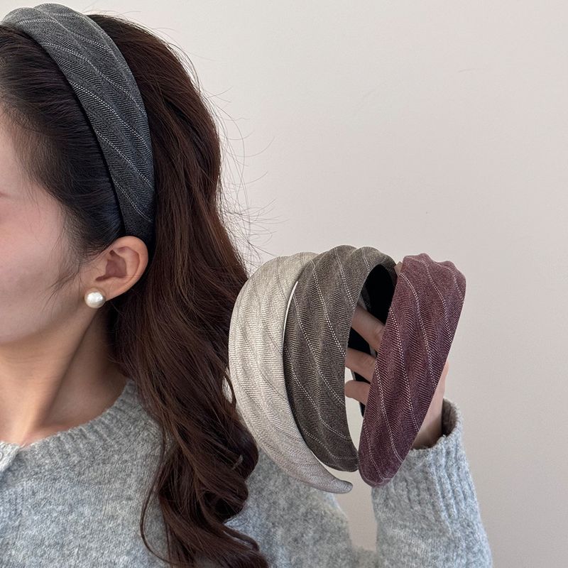 Autumn Winter Striped Solid Color Headband Concave-convex French Style High-end Wide-brimmed Headband British Temperament Outgoing Hair Accessories for Girls