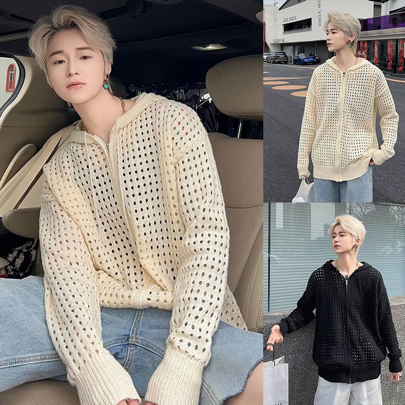 Autumn Winter New Hollow Out Long Sleeve Knitted Cardigan Jacket for Men and Women with Hooded Design Trendy Brand