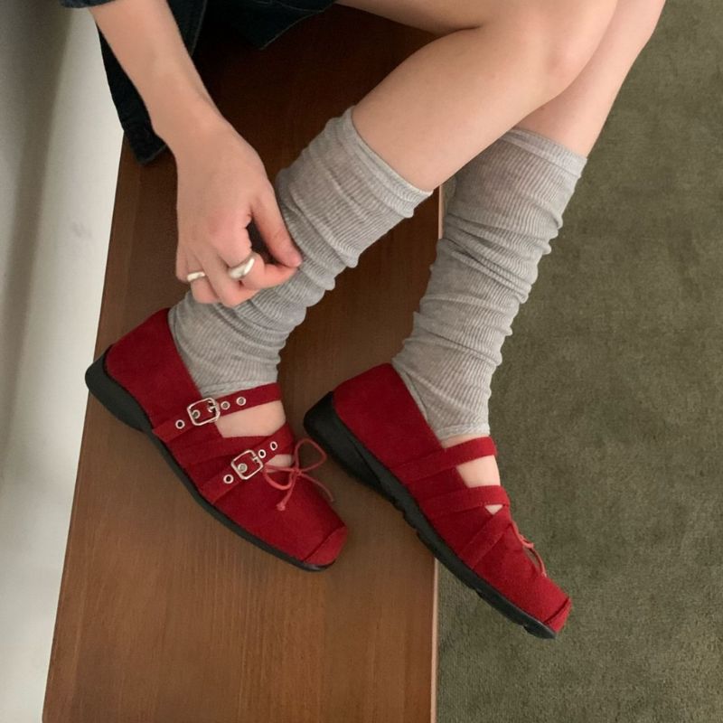 2025 Fall/Winter New Suede Buckle Casual Shoes Women's Bow Mary Jane Shoes Stylish and Versatile