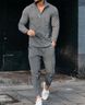 Men's Textured Suit Long Sleeve Polo Shirt Sweatpants Fashion Casual Half-Zip Stand Collar Set