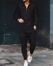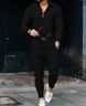 Herren-Anzug mit Strukturmuster, langärmelig, Poloshirt, Jogginghose, modisch, lässig, Halbreißverschluss, Stehkragen