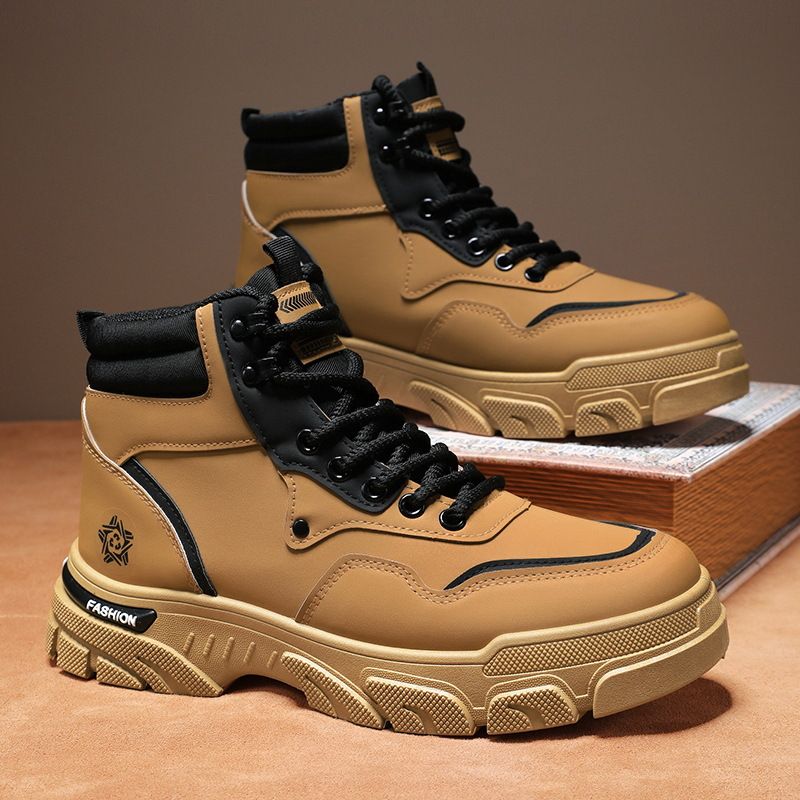 Men's workwear shoes for winter 2024, new construction site work shoes, anti slip and wear-resistant high top Martin boots, casual men's shoes