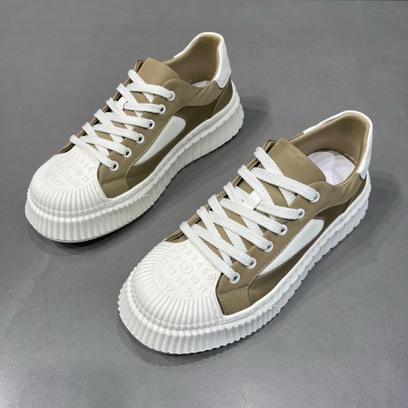 Herren Canvas Casual Dickbesohlte Sponge Cake Weiß Höhe Erhöhende Farbblockierende Keksschuhe, Herrensport