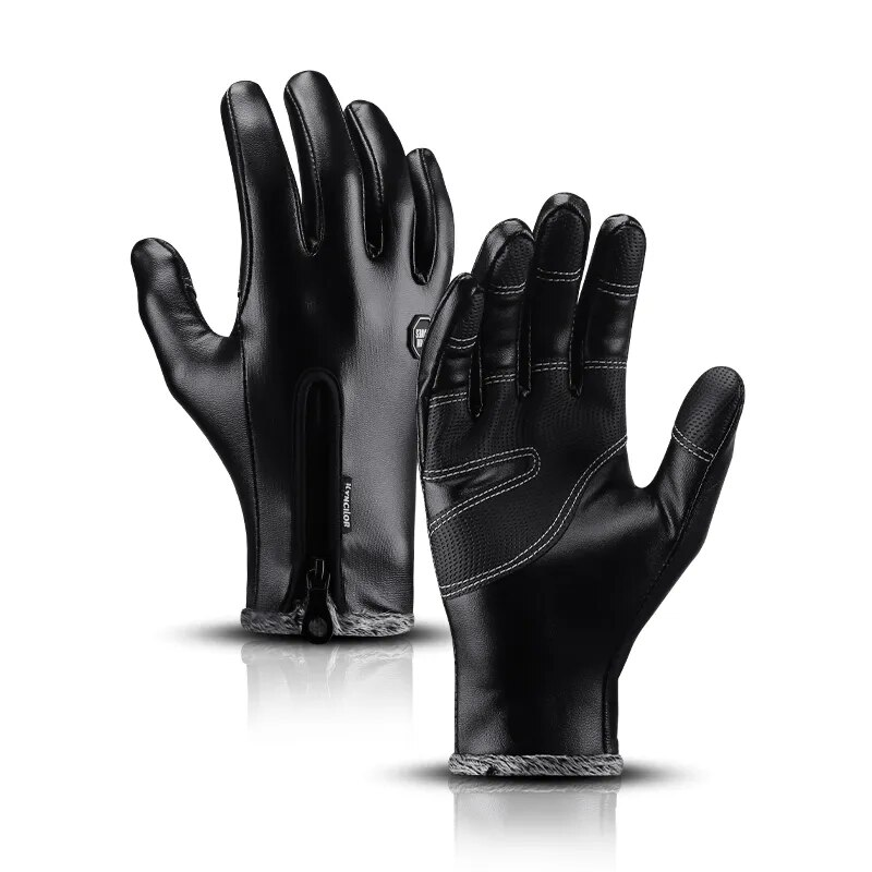 Herren-Fahrradhandschuhe, Winter, warm, Leder, Fleece, wasserdicht, winddicht, Touchscreen, Fahrrad, Outdoor, Vollfinger, Fahrrad, Ski