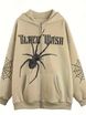 Herren-Fleece-Kapuzenpullover mit Retro-Spinnen-Print und Reißverschluss – Gemütliches Pullover-Sweatshirt mit Vintage-Design, lockere Passform für Herbst und Winter (Schwarz, Sand)