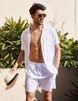 Herren Hemd Set Sommer Sport Kurzarm Shorts Leinen Locker Entspannt tops
