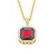 Make a bold statement with this eye-catching hip hop necklace, featuring a striking square pendant adorned with dazzling diamonds and vibrant ruby accents.