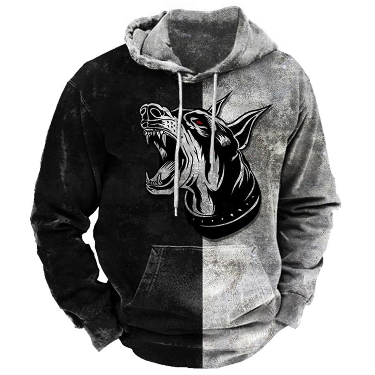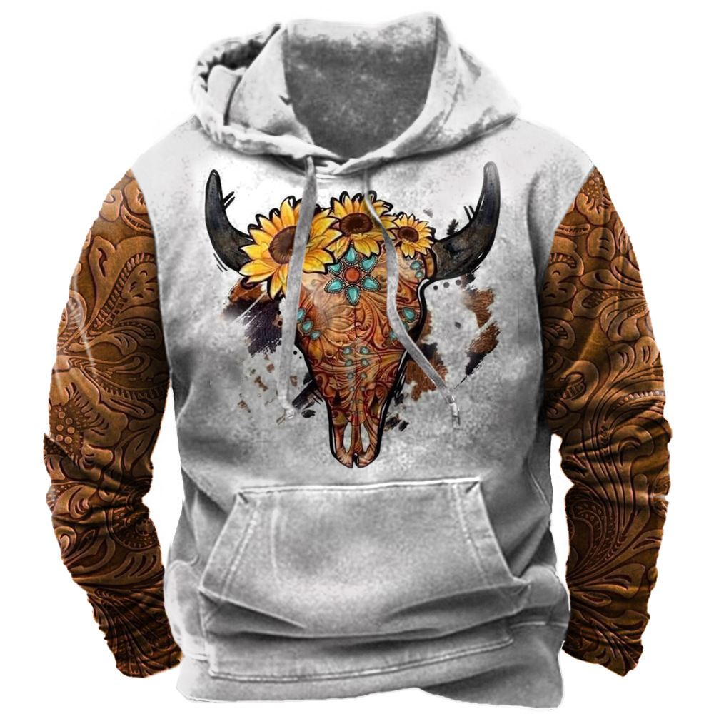 Neuer lockerer, lässiger Pullover-Hoodie im Frühling und Herbst mit trendigem Kapuzen-Sweatshirt im ethnischen Stil mit 3D-Druck für Männer