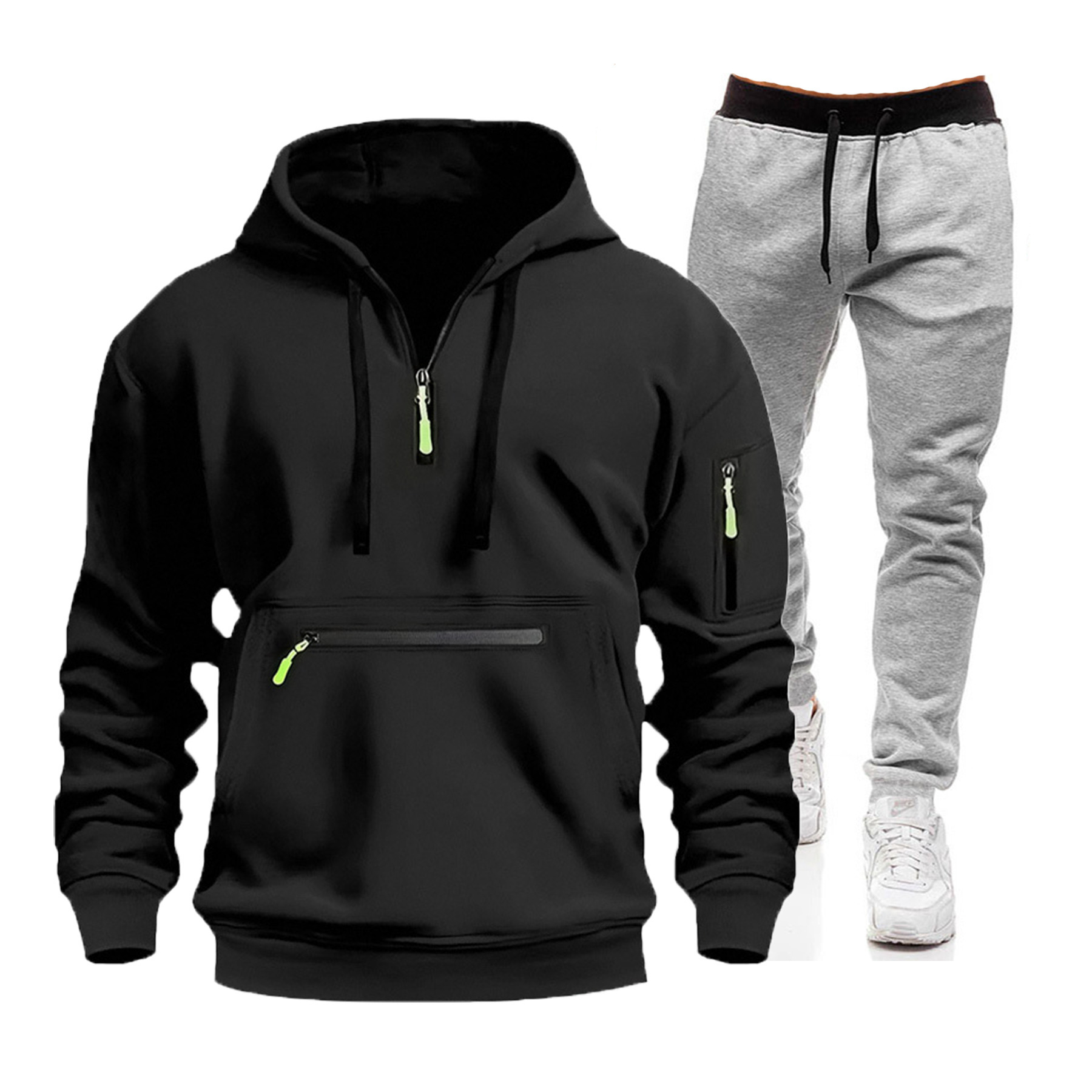 Herren Hoodie Kapuzenpullover Reißverschluss Multi-Pocket Reißverschluss Pullover Sport Casual Hoodie Set