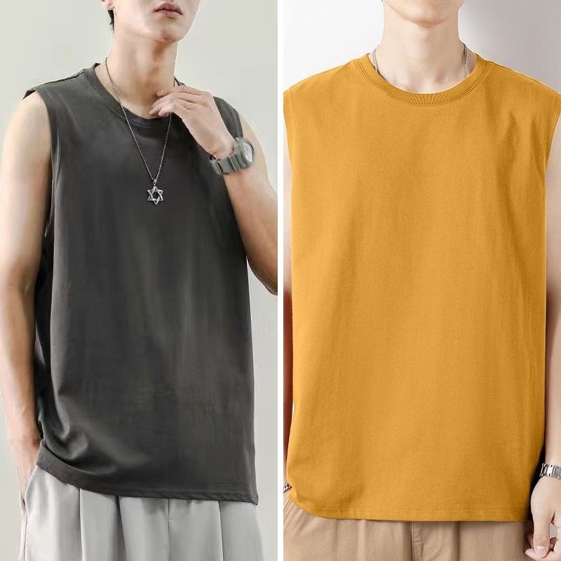 Men's Loose Fit Summer Sports Vest Trendy Brand Ins Solid Color Fitness Sleeveless Tank Top White Base Shirt Short Sleeve T-Shirt