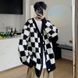 Herren-Pullover mit Farbblock-Gittermuster im japanischen Stil – Übergroßer Strickpullover mit Rundhalsausschnitt | Weicher, locker sitzender Winter-Rollkragenpullover | Streetwear-Mode | EU-Trend (