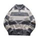Herren-Retro-Strickpullover mit halbem Reißverschluss – Pullover mit Streifen und kontrastierendem Kragen, lässige Loungewear für Herbst und Winter