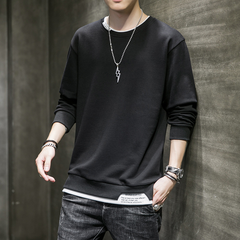 Herren Rundhals-Kapuzenpullover Herbst und Winter Neuer koreanischer Stil Trend Gefälschtes zweiteiliges Oberteil mit zerrissenem Lochdruck unten für