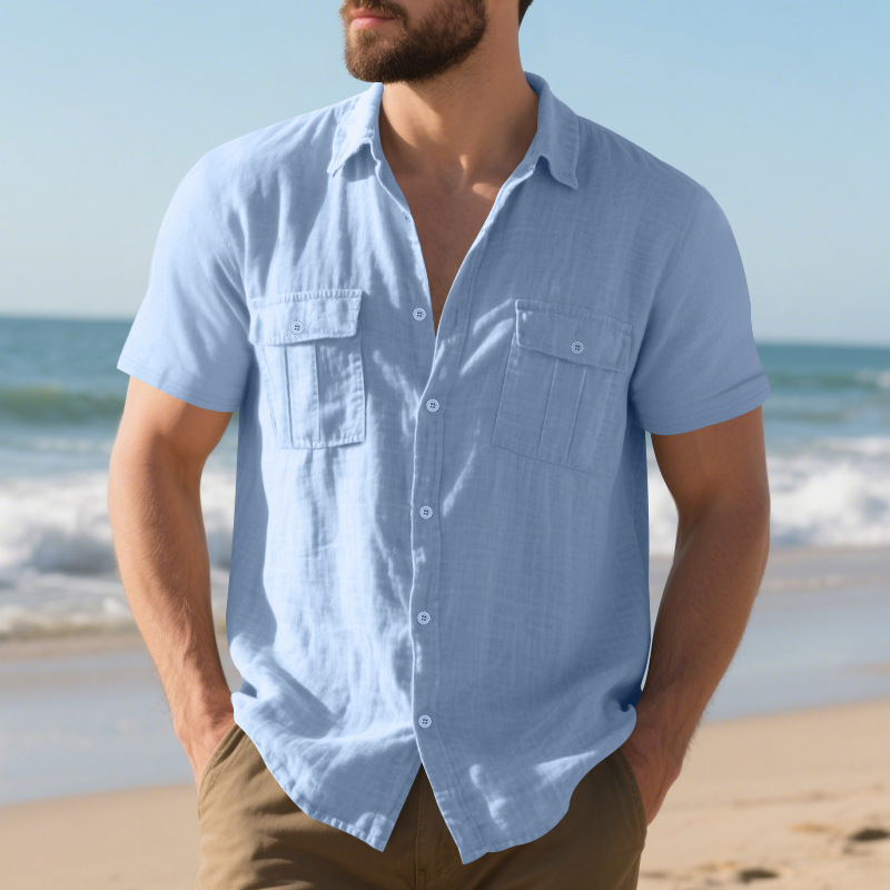 Herren Sommer Strand Atmungsaktiv Casual Leinen Multi Pocket Buttoned Workwear Kurzarmhemd