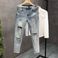Herrenbekleidung High-End-zerrissene Slim-Jeans für Herren, verwaschene blaue Neun-Punkt-Hose, trendige Herrenmarke, trendige, hübsche Röhrenhose