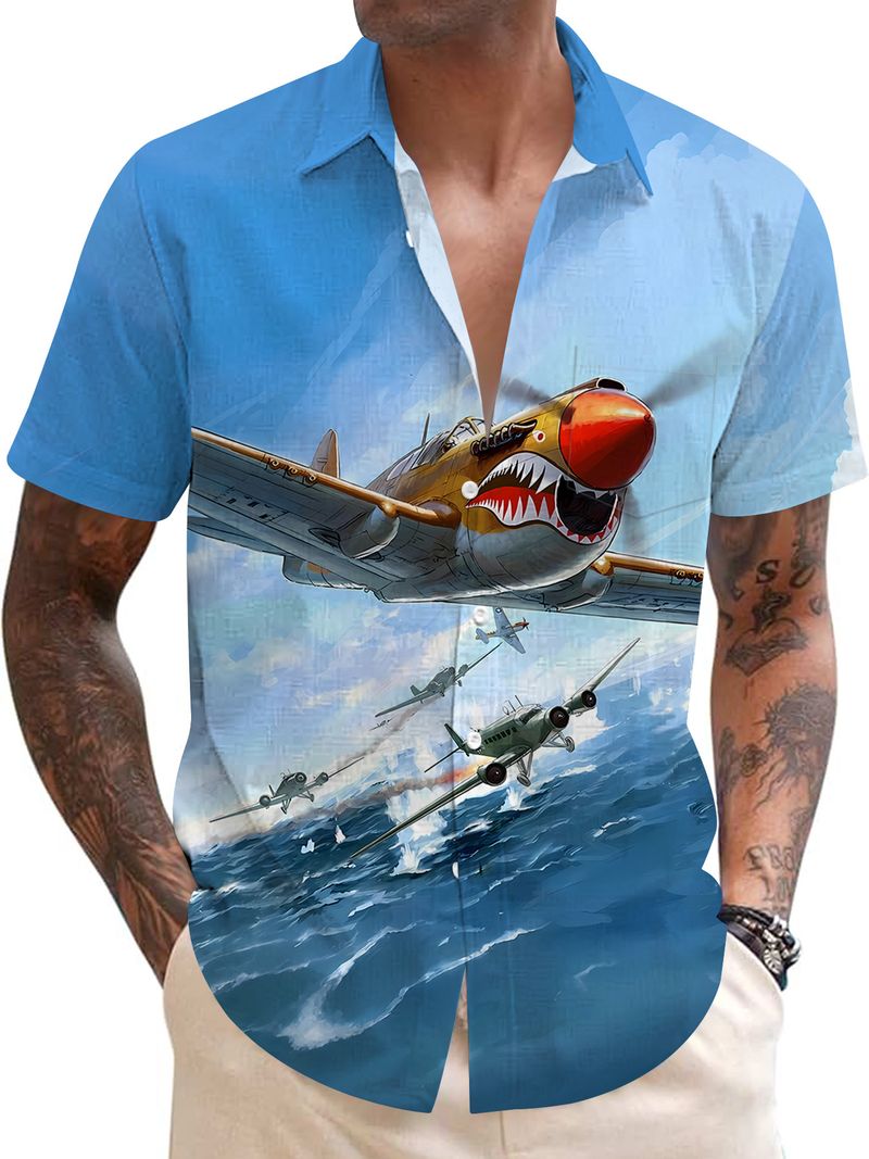 New Hawaiian Independence Day Color Block Print Short Sleeve Shirt with Pocket Loose Fit Summer Men's Shirt