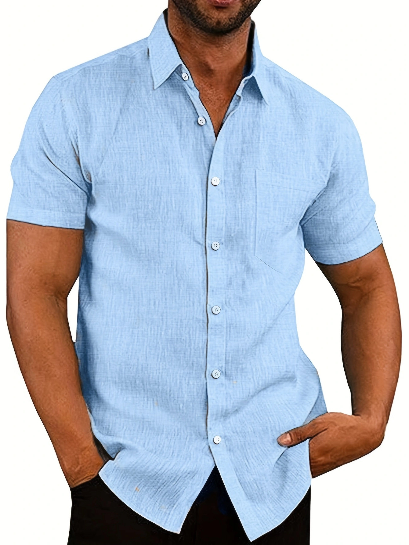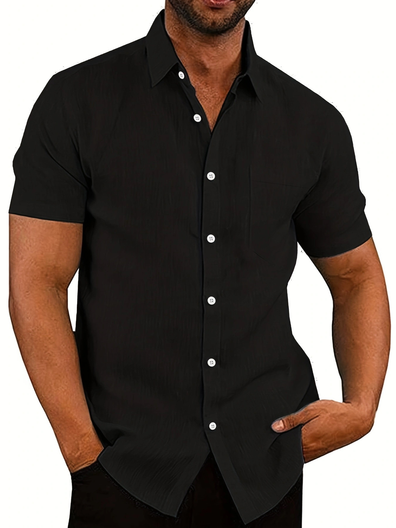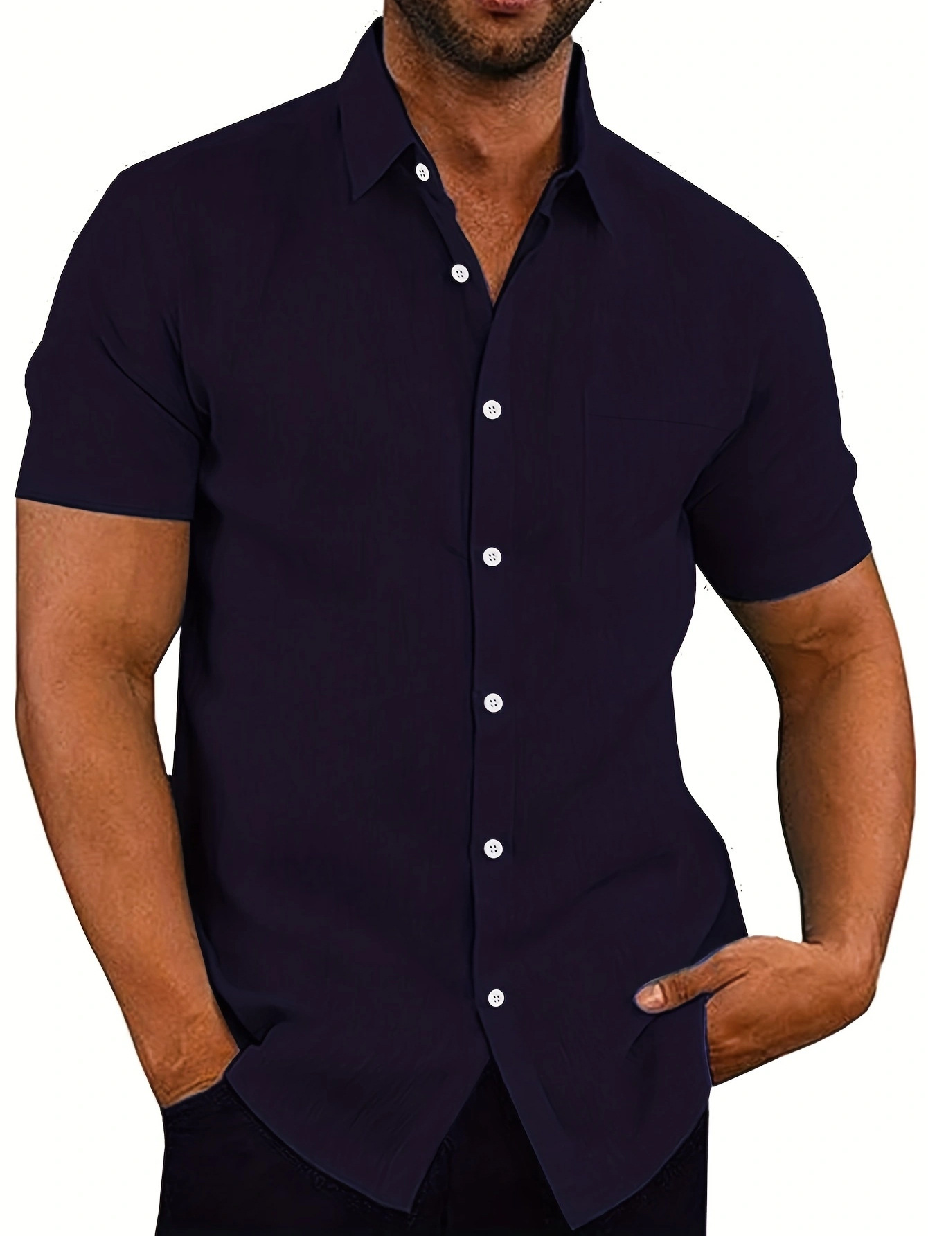 Herrenhemd, sommerlicher, kühler Strandurlaub, kurzärmliger, einfarbiger, lockerer Kragen, Oberteil mit bügelfreien Knöpfen