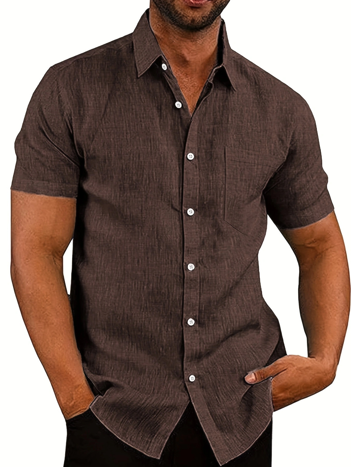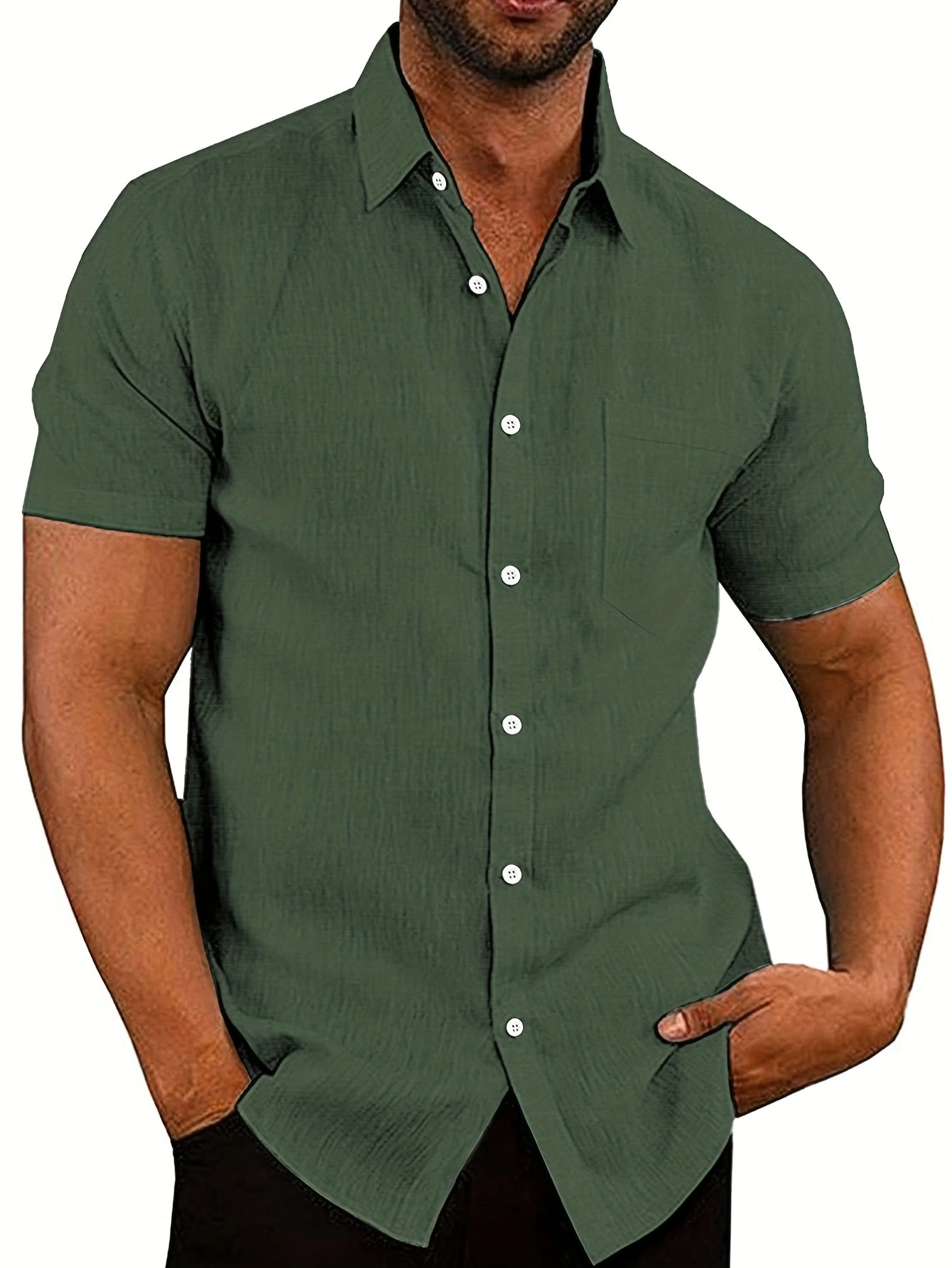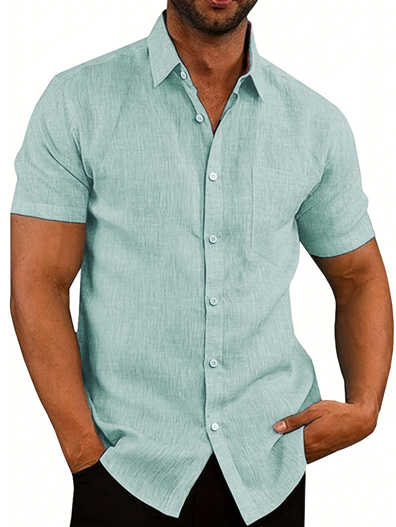 Herrenhemd, sommerlicher, kühler Strandurlaub, kurzärmliger, einfarbiger, lockerer Kragen, Oberteil mit bügelfreien Knöpfen
