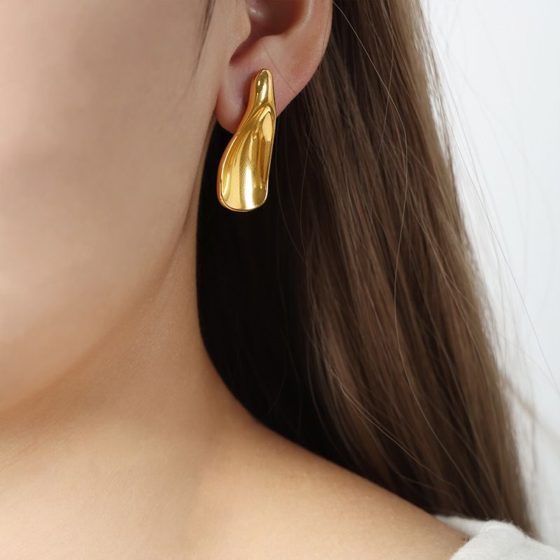 High-End-Ohrringe im leichten Luxus-Nischendesign, modischer Titanstahl, vergoldet, unregelmäßige Wassertropfen-Ohrringe, Damenschmuck